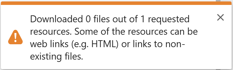 The issue encountered occurs because the dataset from the catalog lacks valid download links to supported file formats. To ensure successful downloads, the dataset must provide direct links to valid data formats, such as CSV, TXT, TIFF, ZIP, etc. If the dataset includes links to unsupported formats, like HTML pages or shared drive links (e.g., Google Drive, Dropbox), the download process will fail.