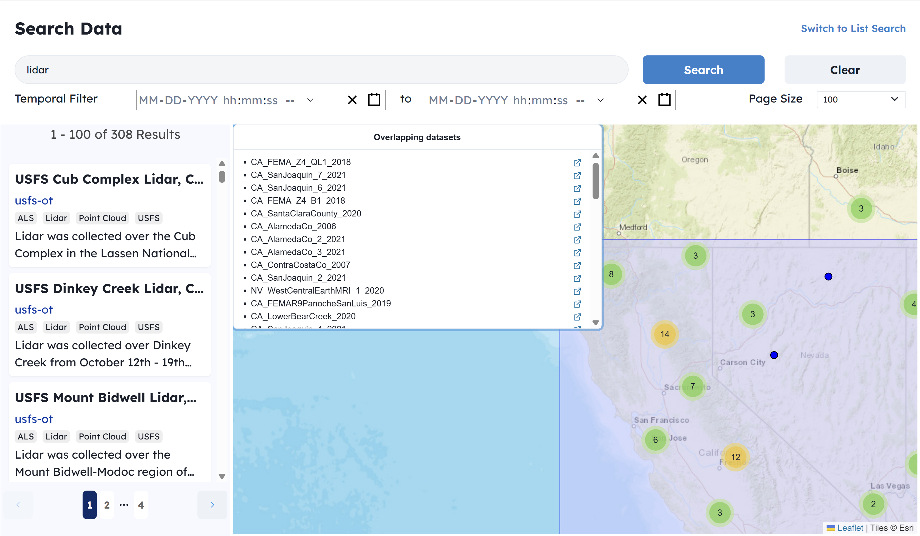 2 - Type the example lidar. You will be able to see the sites where lidar data is available.
