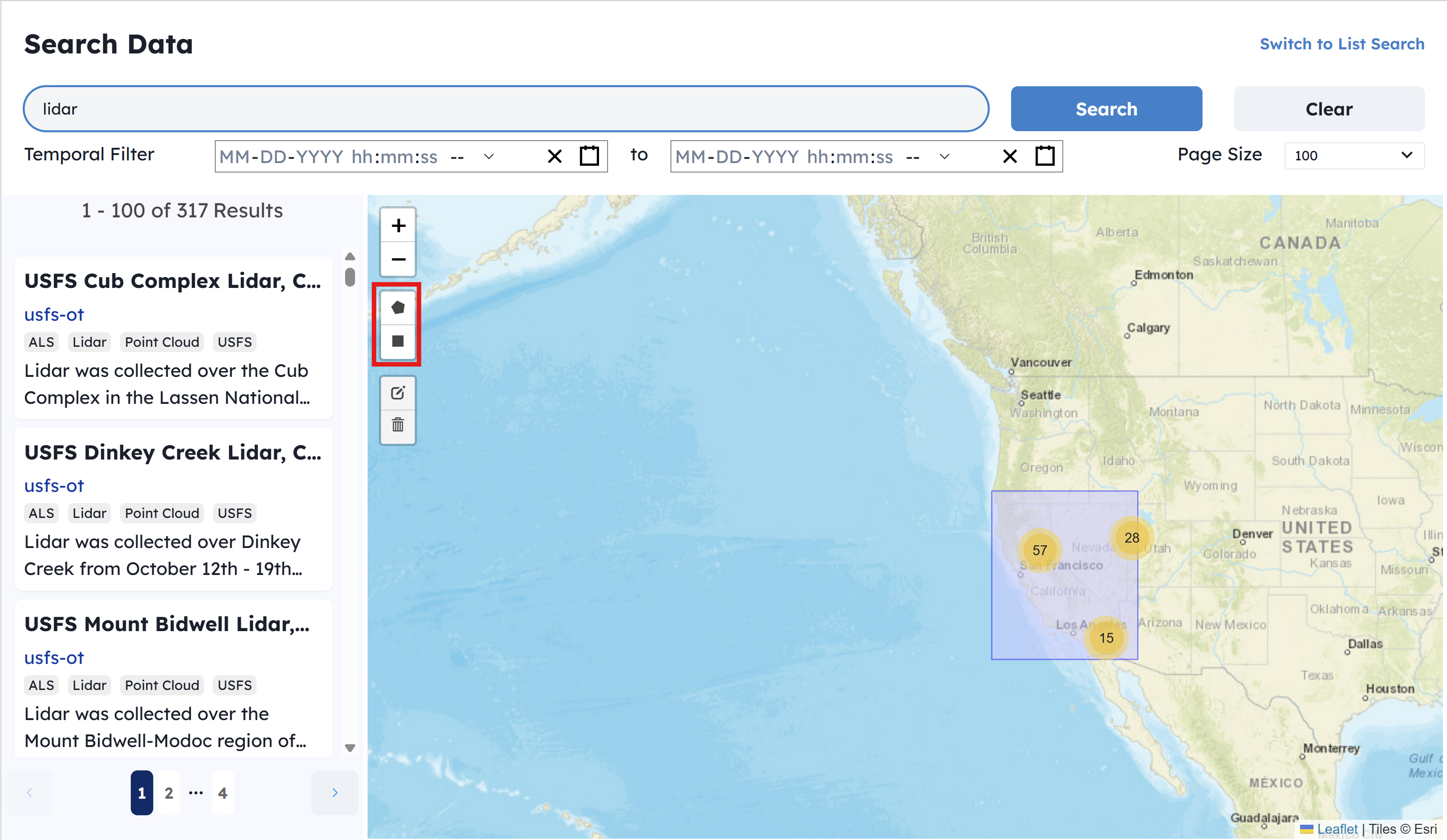 3 - You can also draw a polygon, and obtain datasets for your area of interest.