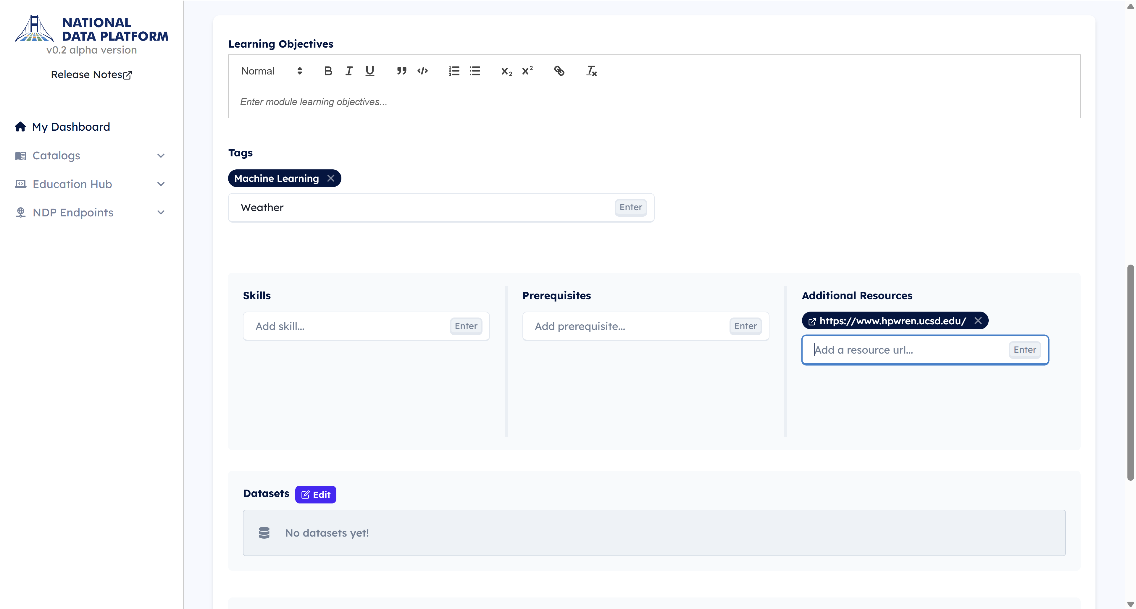 4 - You may skip the Learning Objectives section. This field is primarily used for educational modules in classrooms or data challenges.