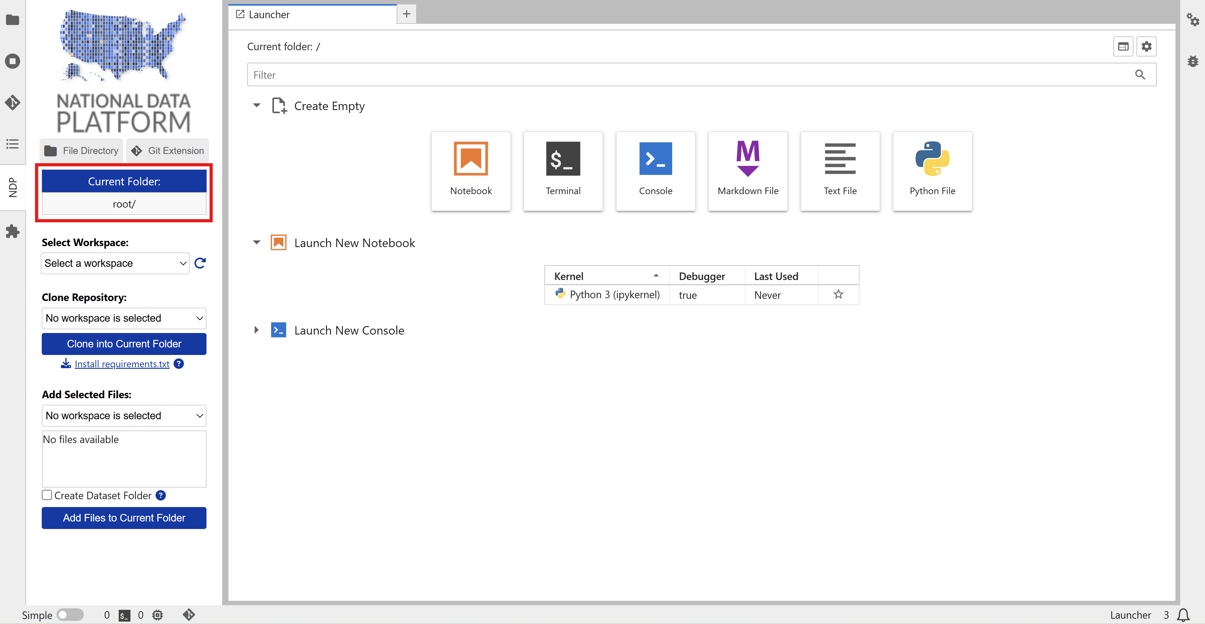 In the previous tutorial, you set up your first Workspace. Now, you'll launch it and begin working within JupyterHub.