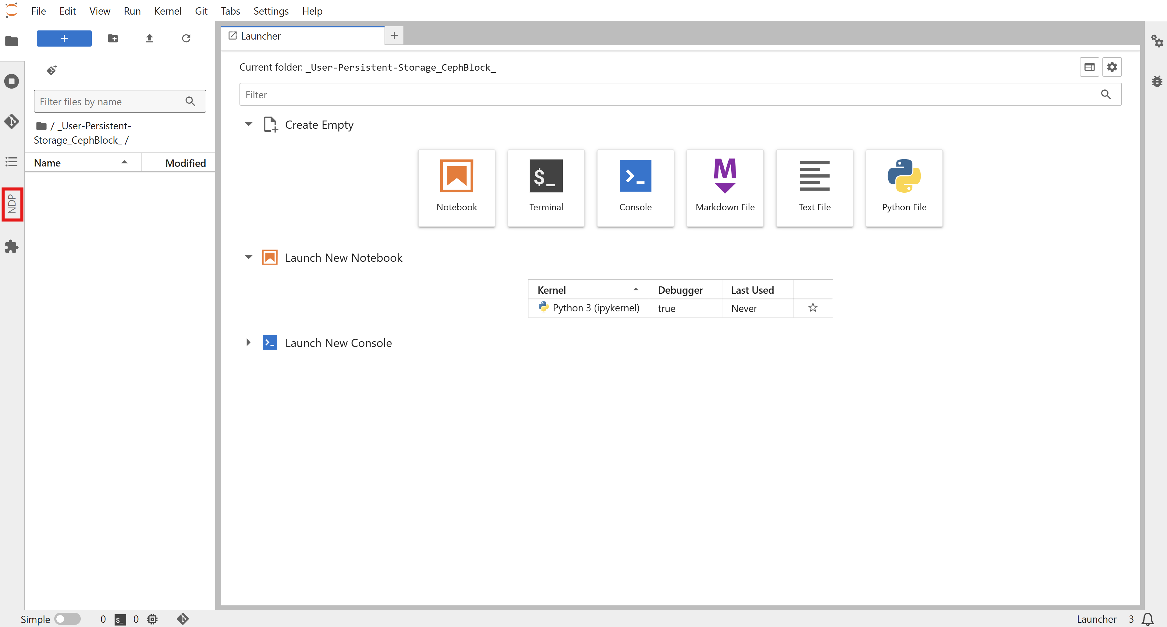 Double-click on your User Persistent Storage to work in a folder with permanent storage (10GB limit).